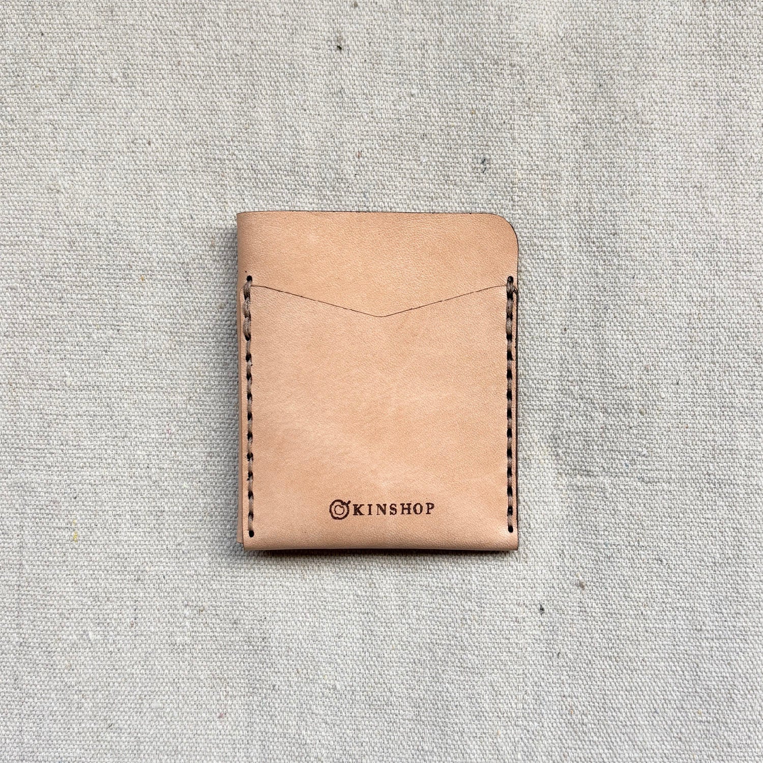 Our original and favorite wallet, the low-profile Slim Wallet is just the right size for the everyday minimalist carrier. This wallet features two exterior pockets made to fit 4-6 cards each, and one interior pocket for folded cash. Crafted from premium leather and hand stitched with braided, waxed thread. This wallet will gain a patina over time, becoming an extension of your everyday. Comes in a stamped cotton bag.